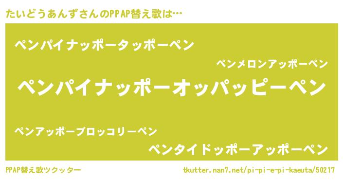 | 欧米人風あだ名 | 『たいどうあんず・ステッグマイヤー』 |