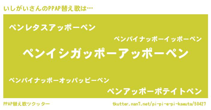 | ピコ太郎風あだ名 | 『イシ次郎』『イコ史郎』『ピイ八郎』 |