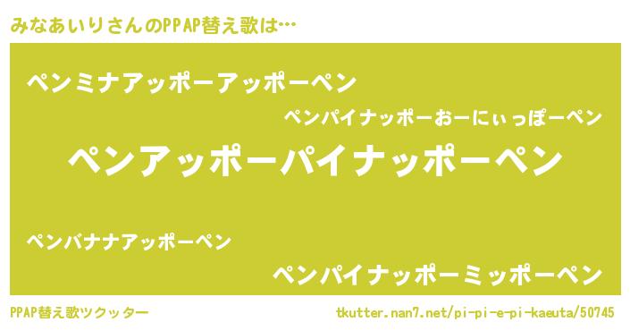 | 欧米人風あだ名 | 『みなあいり・ステッグマイヤー』 |