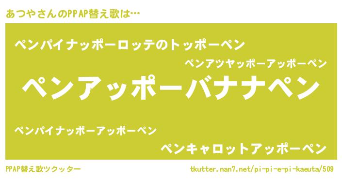 | 欧米人風あだ名 | 『あつや・ステッグマイヤー』 |
