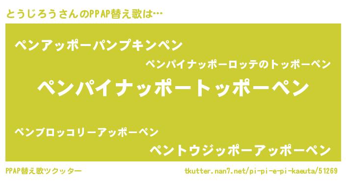 | ピコ太郎風あだ名 | 『ピコト郎』『ピト二郎』『トウ四郎』 |