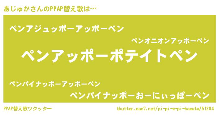 | 肩書あだ名 | 『あじゅか大統領』『あじゅか艦長』 |