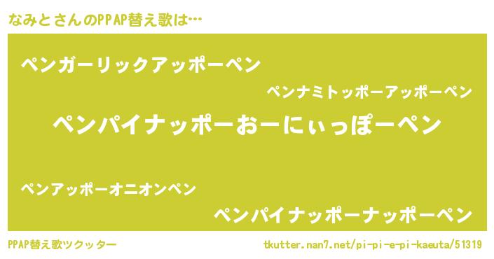 | ヒーロー風カッコイイあだ名 | 『超時空戦士ナミト』『慈愛の使者なみと』 |