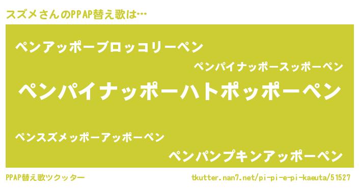 | ピコ太郎風あだ名 | 『スス太郎』『ピス十郎』『スコ二郎』 |