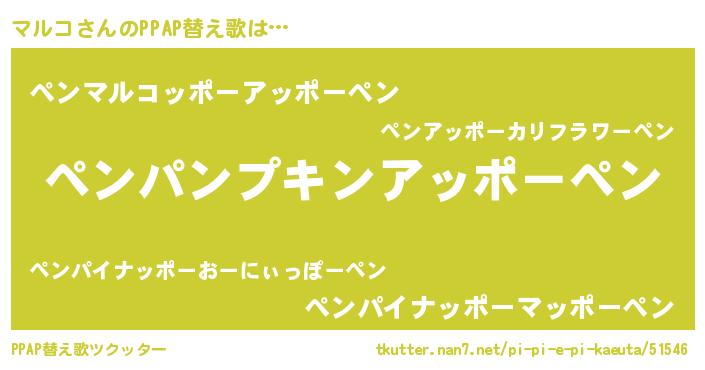 | ピコ太郎風あだ名 | 『マコ二郎』『マル太郎』『ピコマ郎』 |