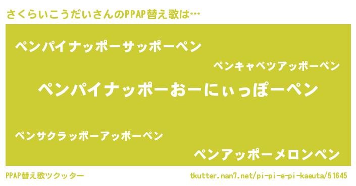| ヘコむあだ名 | 『さくらいこうだい(震え声)』『酢こんぶ』 |