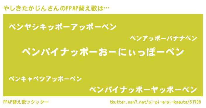 | ピコ太郎風あだ名 | 『ヤヤ太郎』『ヤシ五郎』『ピコヤ郎』 |