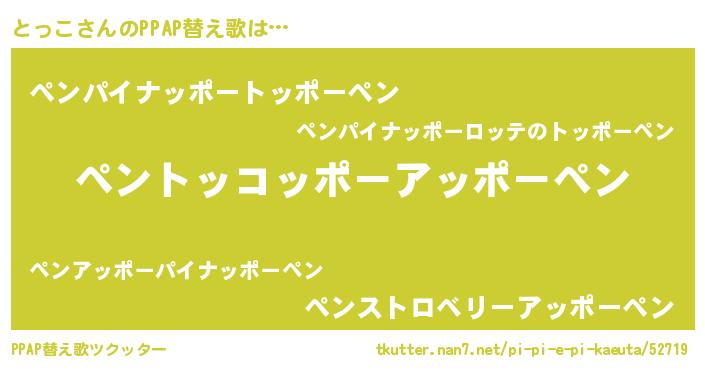 | ピコ太郎風あだ名 | 『トッ二郎』『ピコト郎』『トコ一郎』 |