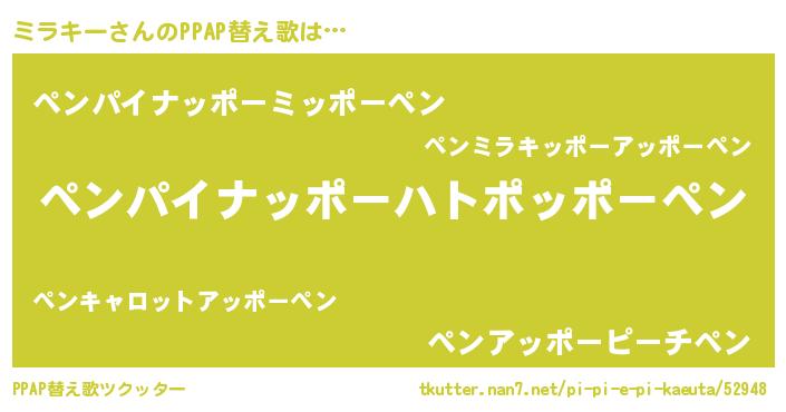 | ヘコむあだ名 | 『ミラキー(小並感)』『豆乳』 |