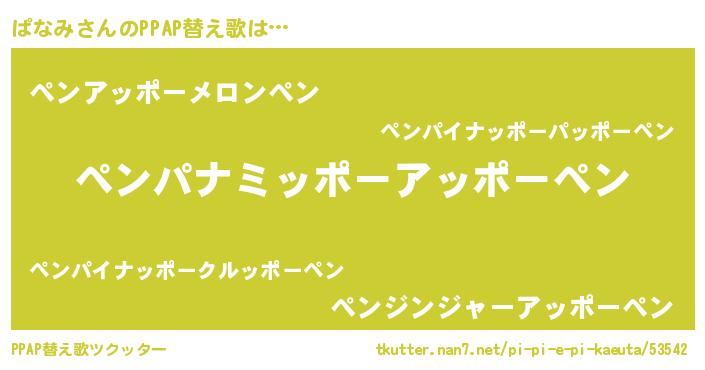 | ピコ太郎風あだ名 | 『パナ二郎』『ピパ次郎』『パコ六郎』 |
