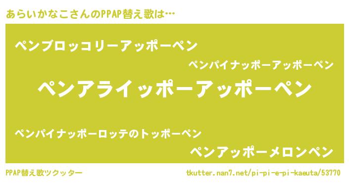 | 欧米人風あだ名 | 『ウサインあらいかなこ』 |
