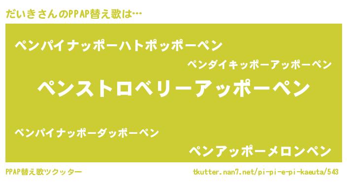 | 欧米人風あだ名 | 『マイケルだいき』『ダレノガレだいき』 |