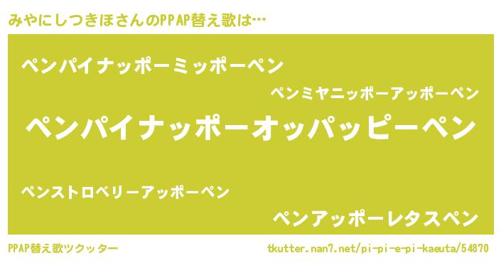 | ヘコむあだ名 | 『みやにしつきほ(遠い目)』『なまこ酢』 |