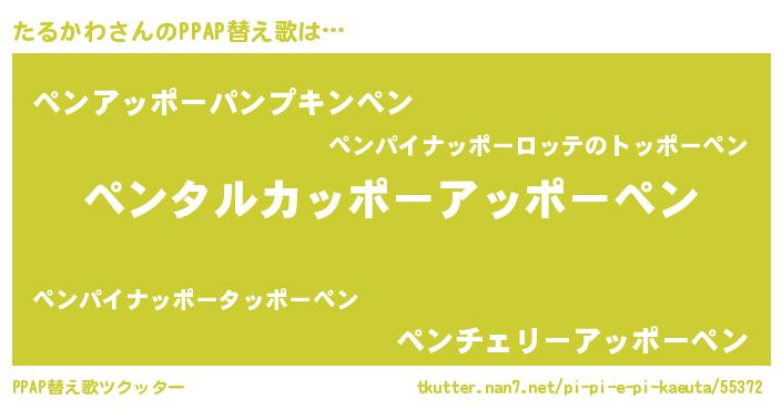 | 胡散臭い通販商品みたいなあだ名 | 『信頼と実績のサプリメント…その名も「たるかわ」』 |