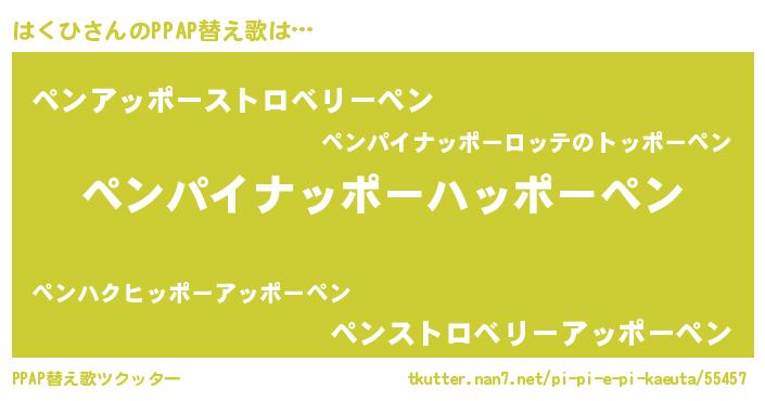 | ヒーロー風カッコイイあだ名 | 『ネオハクヒ』『ウルトラはくひマン』 |