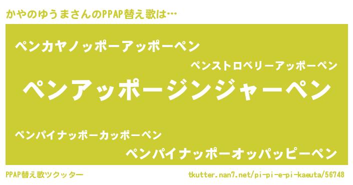 | 欧米人風あだ名 | 『ケンブリッジかやのゆうま』 |