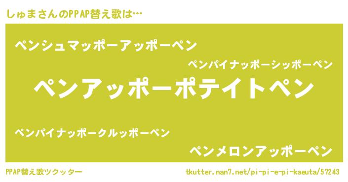 | 肩書あだ名 | 『しゅま国家主席』『しゅま少尉』 |