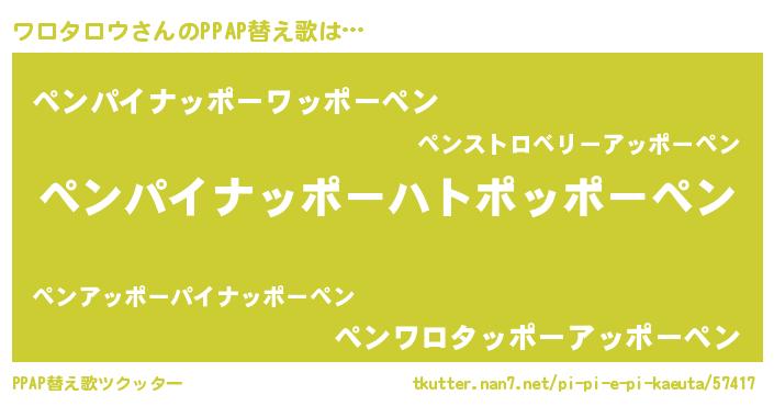 | 料理風あだ名 | 『ワロタロウのカルパッチョ風』 |