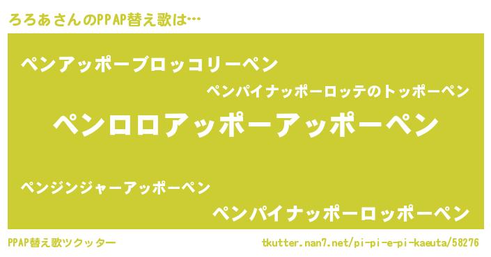 | 意味不明あだ名 | 『とにかく怪しいろろあ』『自称ろろあ』 |