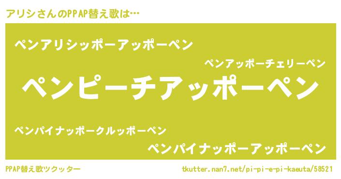 | 意味不明あだ名 | 『ペロリンアリシ』『永久保存アリシ』 |