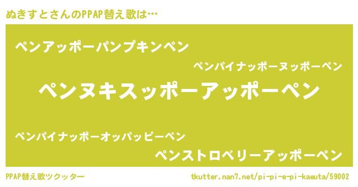 | ピコ太郎風あだ名 | 『ヌキ六郎』『ピヌ二郎』『ヌコ一郎』 |