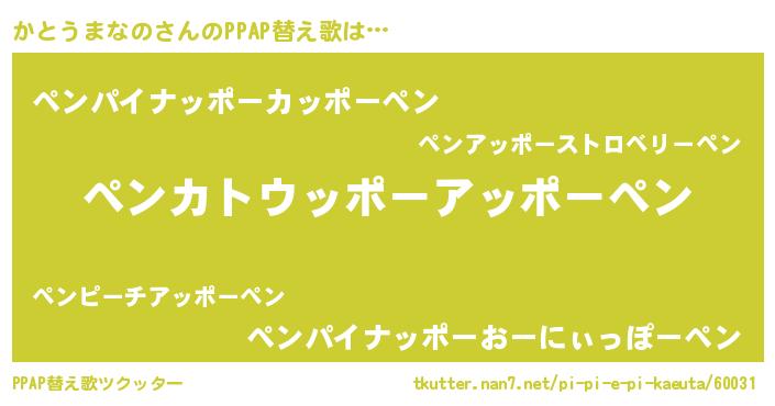| 欧米人風あだ名 | 『ウサインかとうまなの』 |