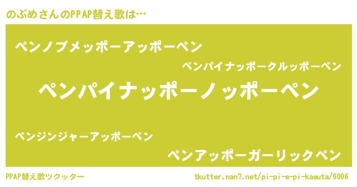 | ピコ太郎風あだ名 | 『ピコノ郎』『ノブ六郎』『ピノ八郎』 |