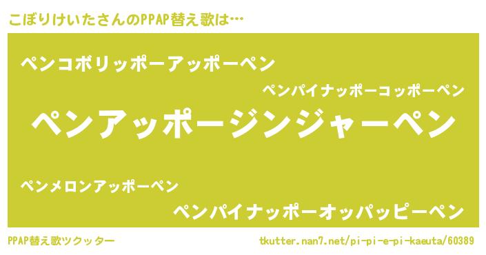 | 欧米人風あだ名 | 『アンジェラ・こぼりけいた』 |