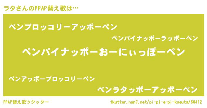 | ピコ太郎風あだ名 | 『ララ太郎』『ラコ十郎』『ラタ史郎』 |