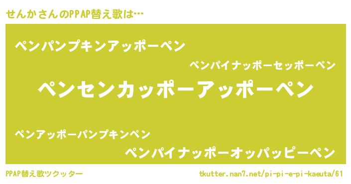 | 意味不明あだ名 | 『とにかく怪しいせんか』『自称せんか』 |