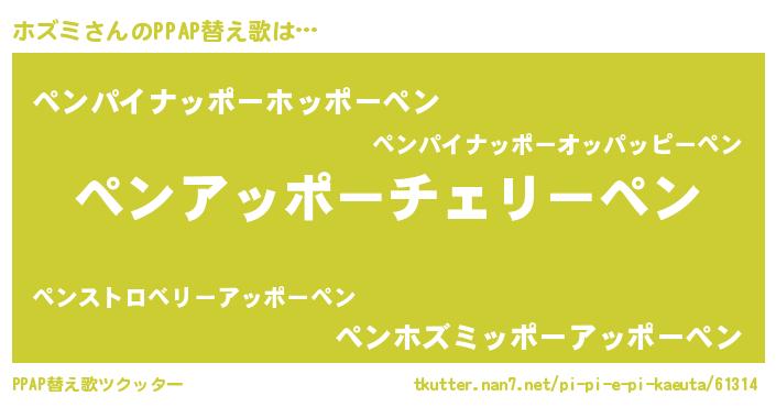 | ピコ太郎風あだ名 | 『ピホ一郎』『ピコホ郎』『ホズ六郎』 |