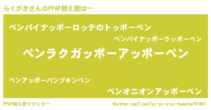 | ピコ太郎風あだ名 | 『ラク三郎』『ララ太郎』『ラコ六郎』 |