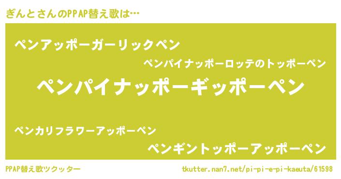 | ピコ太郎風あだ名 | 『ピコギ郎』『ピギ十郎』『ギン二郎』 |