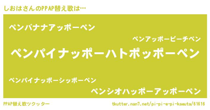 | 意味不明あだ名 | 『住所不定無職しおは(2歳)』『自称しおは』 |