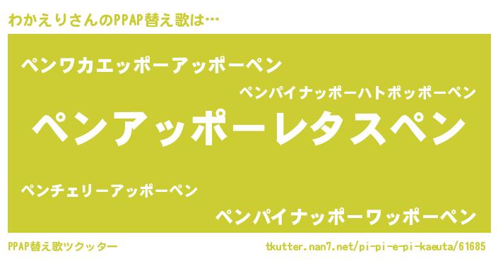 | 意味不明あだ名 | 『住所不定無職わかえり(56歳)』 |