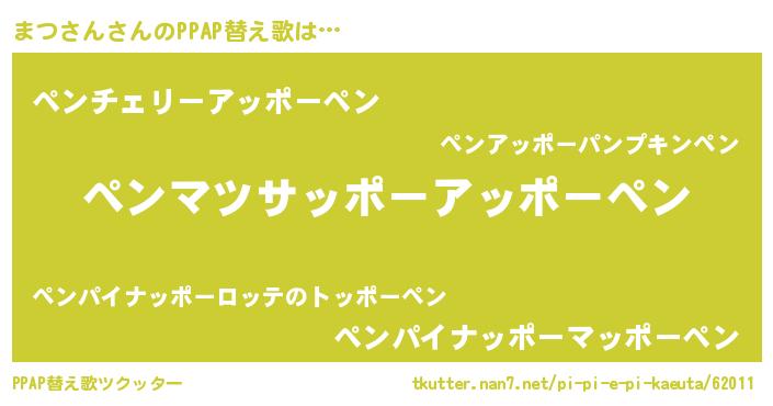 | 意味不明あだ名 | 『自称まつさん』『ペロリンまつさん』 |