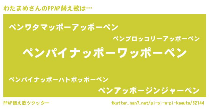 | 意味不明あだ名 | 『永久保存わたまめ』『ペロリンわたまめ』 |