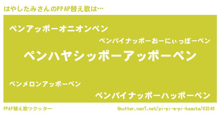 | ピコ太郎風あだ名 | 『ハヤ次郎』『ピハ六郎』『ピコハ郎』 |
