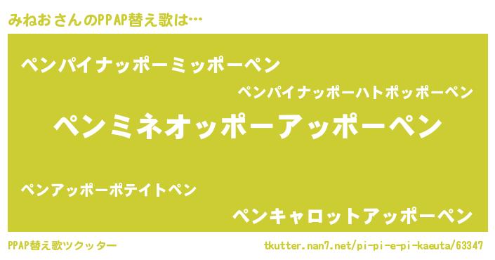 | 男性向けラノベタイトル風あだ名 | 『みねお~年齢イコール彼女いない歴の魔法使い~』 |