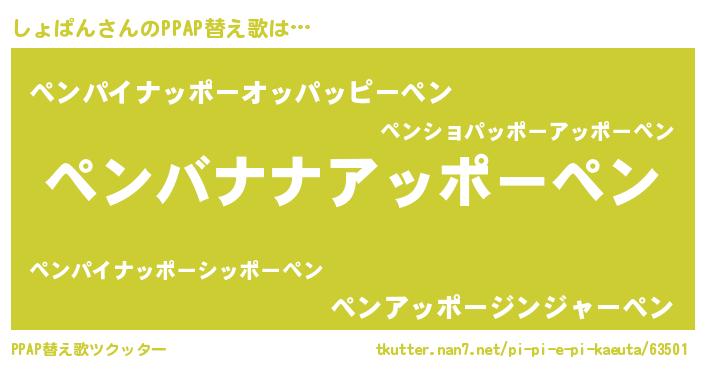 | 意味不明あだ名 | 『なめこ科しょぱん属』『自称しょぱん』 |
