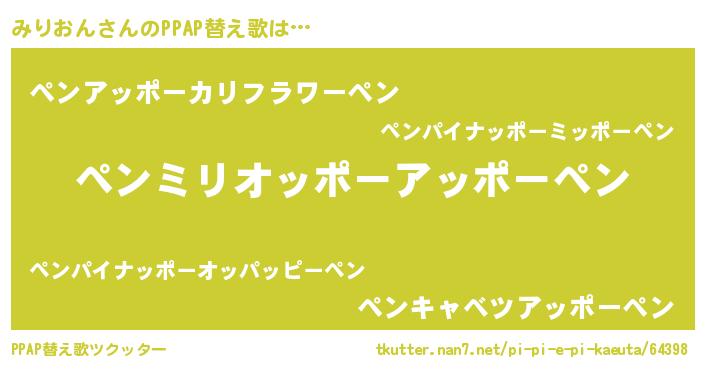 | ピコ太郎風あだ名 | 『ミリ三郎』『ピミ史郎』『ミコ四郎』 |