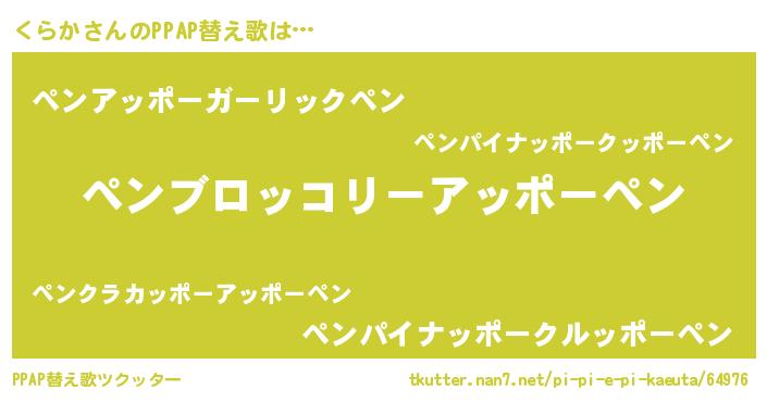 | 意味不明あだ名 | 『ペロリンくらか』『なめこ科くらか属』 |