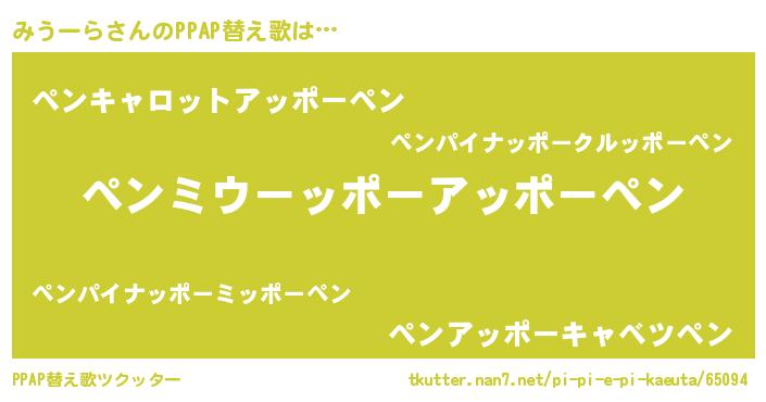 | 男性向けラノベタイトル風あだ名 | 『うちのみうーらが世界を掌握している!』 |