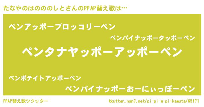 | ポケモン風あだ名 | 『ヒタナヤノハノノノシト』『タナキング』 |