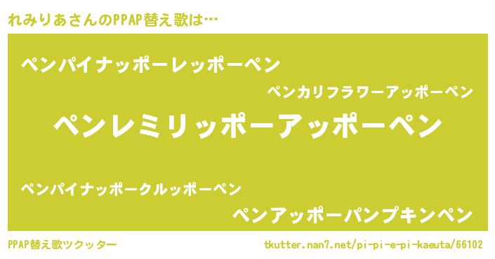 | 男性向けラノベタイトル風あだ名 | 『Re:れみりあから始める異世界生活』 |