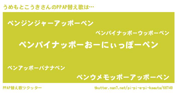 | ピコ太郎風あだ名 | 『ウウ太郎』『ウコ十郎』『ウメ五郎』 |