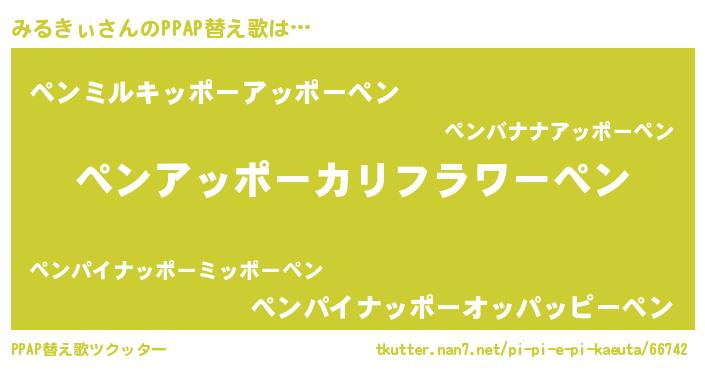 | ピコ太郎風あだ名 | 『ピミ史郎』『ミル三郎』『ミミ太郎』 |