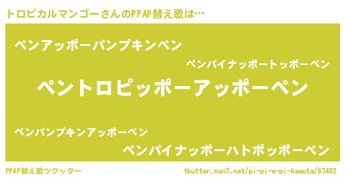| 男性向けラノベタイトル風あだ名 | 『トロピカルマンゴーに滅ぼされるだけの簡単なお仕事です』 |