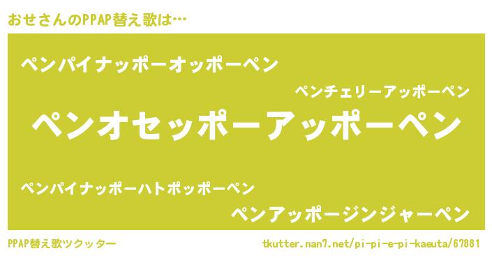 | 男性向けラノベタイトル風あだ名 | 『この素晴らしい世界におせを!』 |