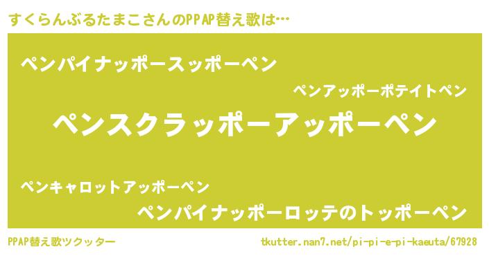 | 伝説のあだ名 | 『覚醒した僧侶すくらんぶるたまこ』 |